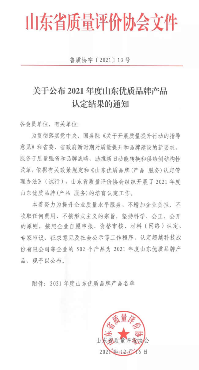 近日,山东省质量评价协会发布了《关于公布2021年度山东优质品牌产品认定结果的通知》,经过严格评选,山东莱博生物科技有限公司的丙型肝炎病毒核心抗原检测试剂盒凭借较强的产品竞争力在一众企业中脱颖而出,入选2021年度山东优质品牌产品名单。 “山东优质品牌”评选旨在围绕实施质量强省和品牌战略,推动高质量发展,深化供给侧结构性改革,在全社会进一步增强品牌意识,打造更多名优品牌。本次评选活动进一步贯彻山东省新旧动能转换重大战略要求,助力质量强省和品牌高端化进程。