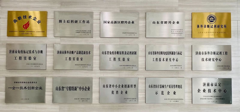 建有国家博士后科研工作站分站、山东省企业技术中心、山东省免疫诊断原料及试剂研制工程实验室、山东省体外诊断免疫原料制备与标记工程技术研究中心、济南市企业技术中心、济南市免疫标记技术与诊断产品工程实验室、济南市体外诊断产品制造新技术工程实验室、济南市体外诊断试剂工程技术研究中心等多个研发平台。